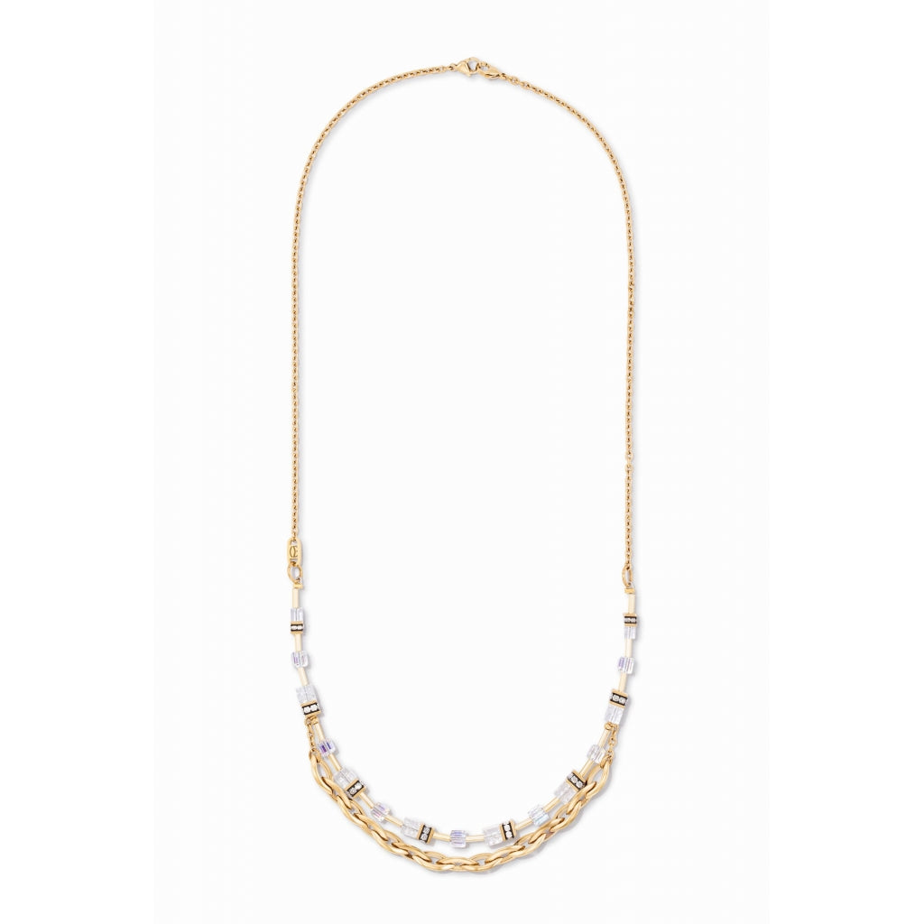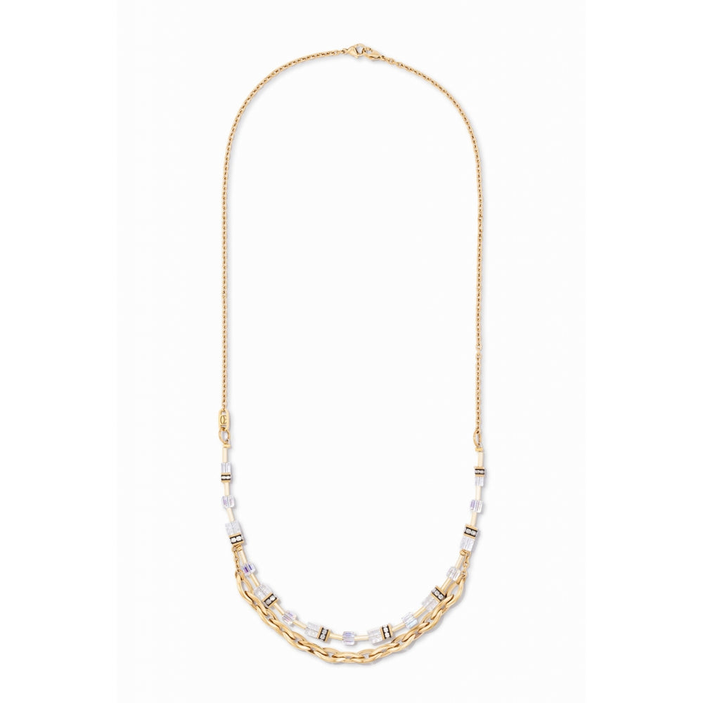 Coeur de Lion Geocube Halskette 4523/10-1416. Die Coeur de Lion GeoCUBE Festive Layer Halskette ist ein elegantes Schmuckstück für Damen aus vergoldetem Edelstahl, verziert mit Kristallen und Swarovski-Elementen für einen Hauch von Glanz und Raffinesse. Ihr dreilagiges Design, typisch für die Festive Layer Linie, erzeugt einen raffinierten und modernen Layering-Effekt, der sowohl elegante als auch legere Outfits perfekt abrundet. Mit einer Länge von 68 cm und einem Karabinerverschluss vereint diese Halskette Tragekomfort, hochwertige Verarbeitung und zeitlosen Stil. Sie wird in der Originalverpackung von Coeur de Lion mit 2 Jahren internationaler Garantie geliefert.