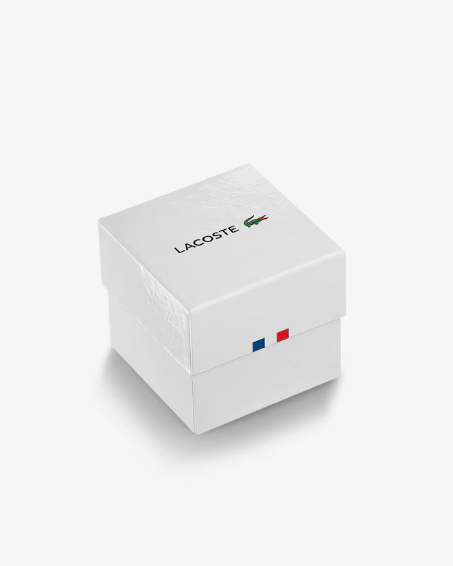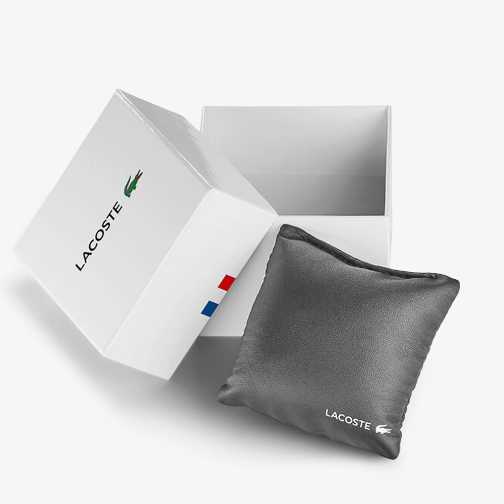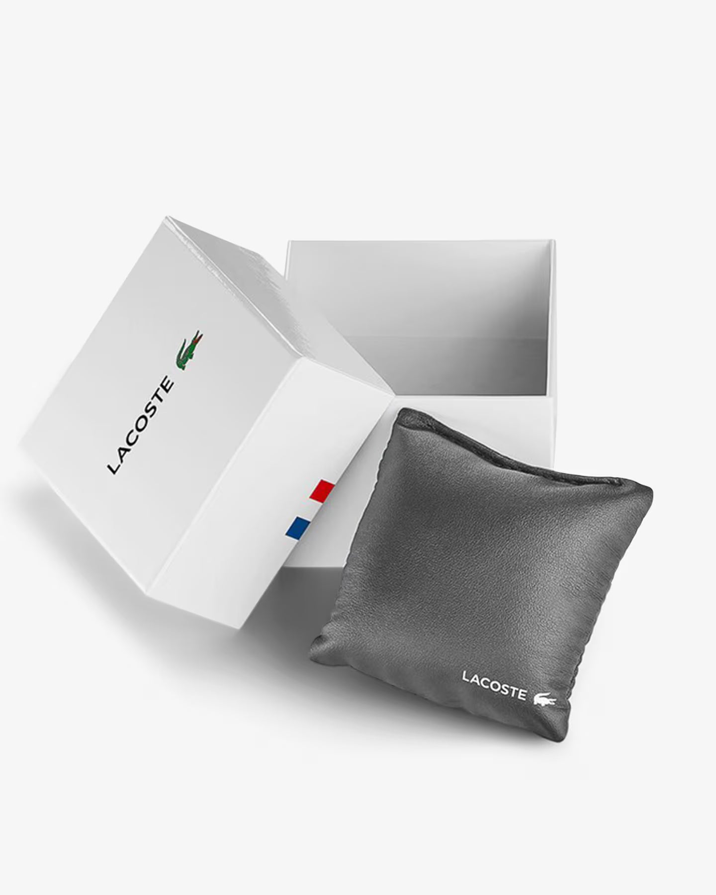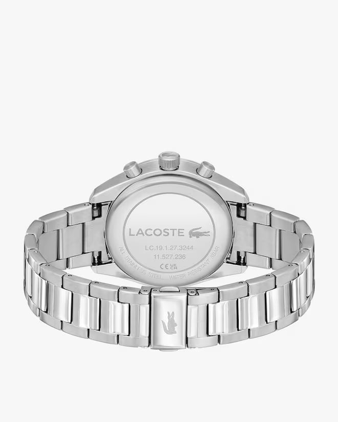 Lacoste Boston Chronograph Herrenuhr – Stahl/Schwarz 2011347. Das Modell Boston 2011347 vereint sportlichen Stil und Eleganz mit einem raffinierten Design. Mit einem 42-mm-Edelstahlgehäuse, einem farblich abgestimmten Edelstahlarmband und einem schwarzen Zifferblatt mit drei Chronographen-Hilfszifferblättern bietet sie anspruchsvolle Funktionalität ohne Kompromisse bei der Vielseitigkeit. Ausgestattet mit einem Quarzwerk, Mineralglas, Wasserdichtigkeit bis 5 ATM (50 Meter) und einer zweijährigen internationalen Garantie ist sie die ideale Uhr für alle, die einen dynamischen und gleichzeitig klassischen Stil suchen.