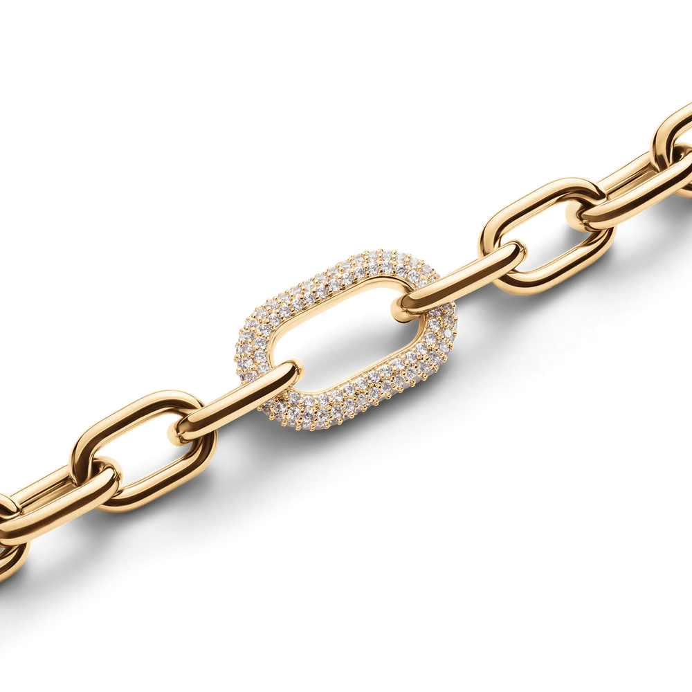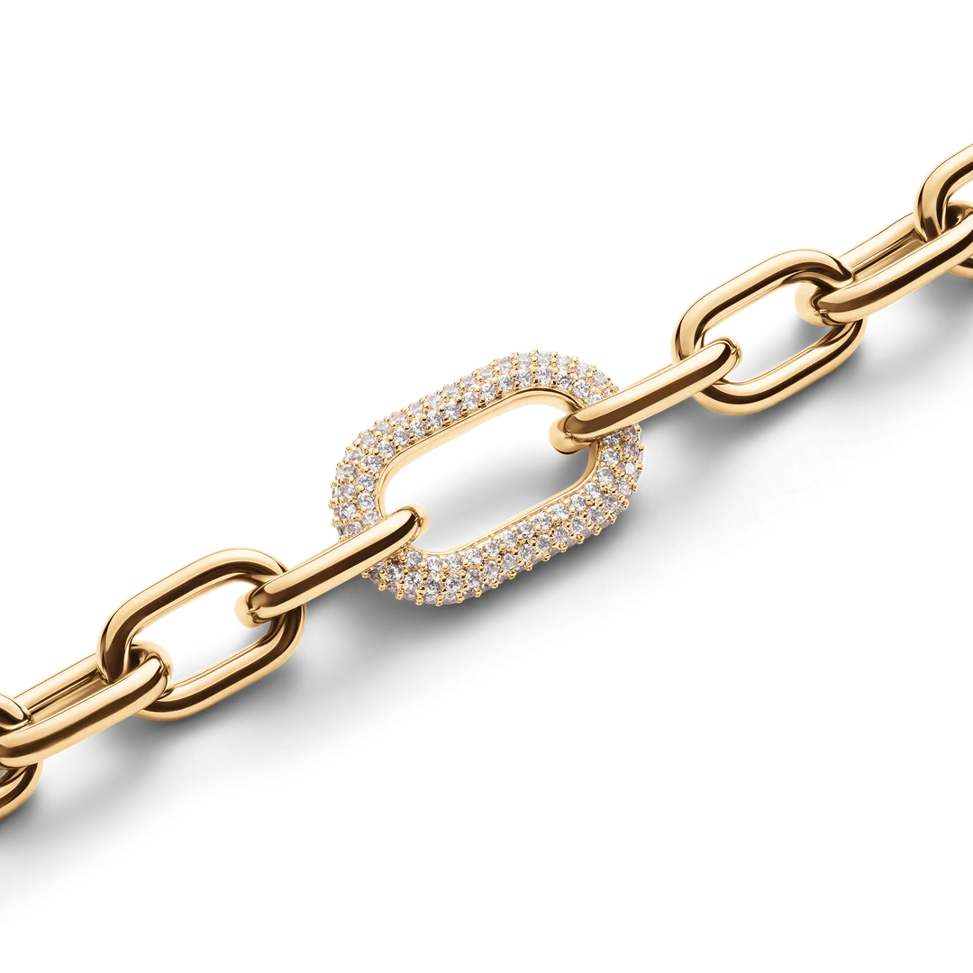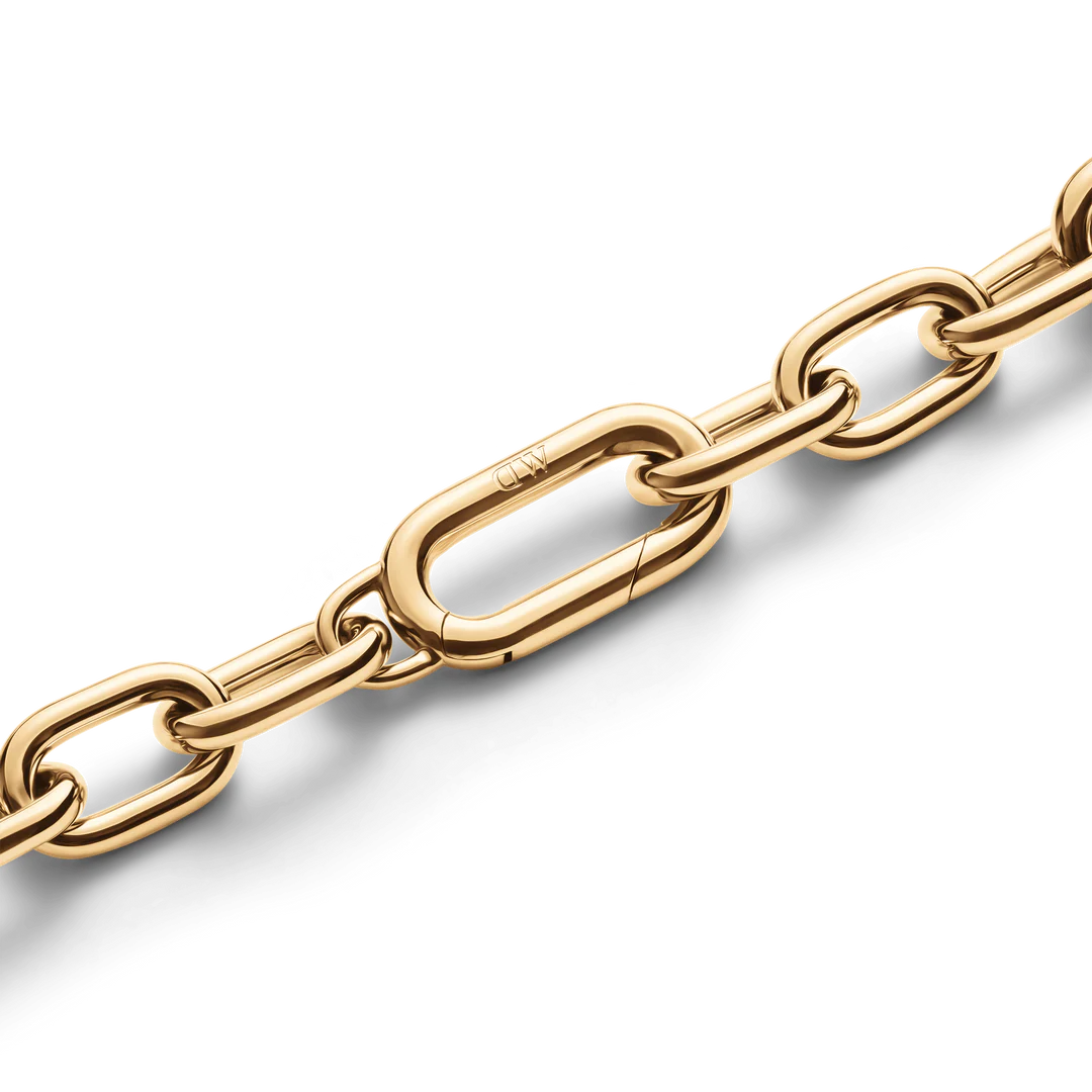 Daniel Wellington Crystal Link Armband DW00400593. Das Daniel Wellington DW00400593, auch bekannt als Crystal Link Armband, ist ein elegantes und raffiniertes Accessoire, das Ihrem Alltagslook einen Hauch von Glanz verleiht. Gefertigt aus 316L-Edelstahl mit goldener PVD-Beschichtung, besticht dieses Armband durch eine Reihe miteinander verbundener ovaler Glieder, die von einem zentralen Ring mit Zirkonia-Kristallen akzentuiert werden, welche das Licht dezent einfangen. Mit einer Länge von 18,5 cm verfügt es über einen Karabinerverschluss für einfaches An- und Ablegen und sicheren Halt. Originalverpackung von Daniel Wellington. Offizielle Daniel Wellington Garantie.