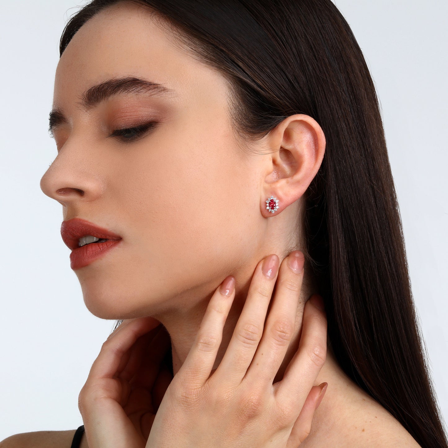 DAMENOHRRINGE LIVE DIAMOND CLASSIC GEM STONE LDW100173. Materialien: 375# recyceltes Weißgold. Im Labor gezüchteter Rubin + Diamant. Verpackung: LIVE DIAMOND Originalverpackung. Produkt mit internationaler LIVE DIAMOND-Garantie.